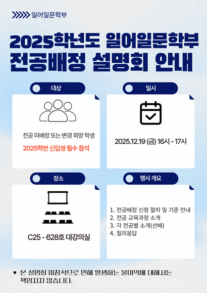 2025학년도 일어일문학부 전공배정 설명회 안내