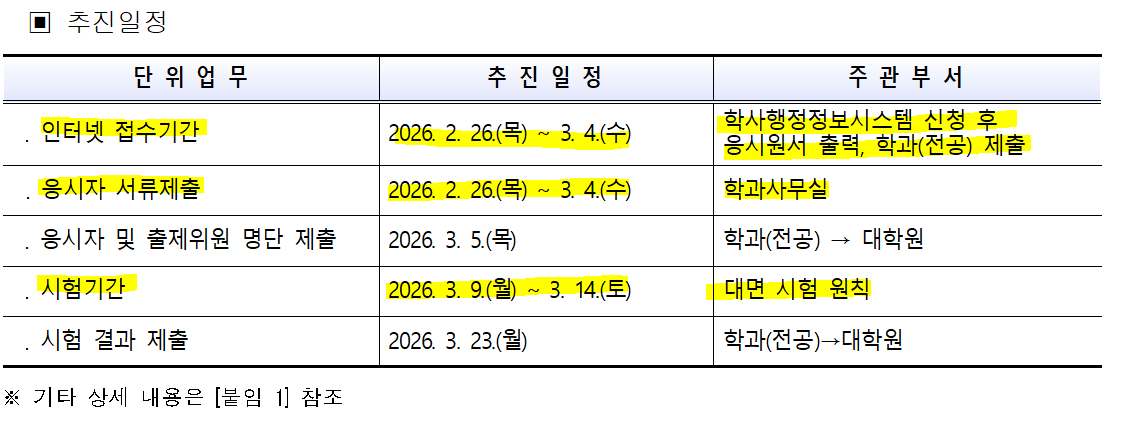 (~3/4) 2026학년도 1학기 일반대학원 외국어 및 종합시험 실시 안내